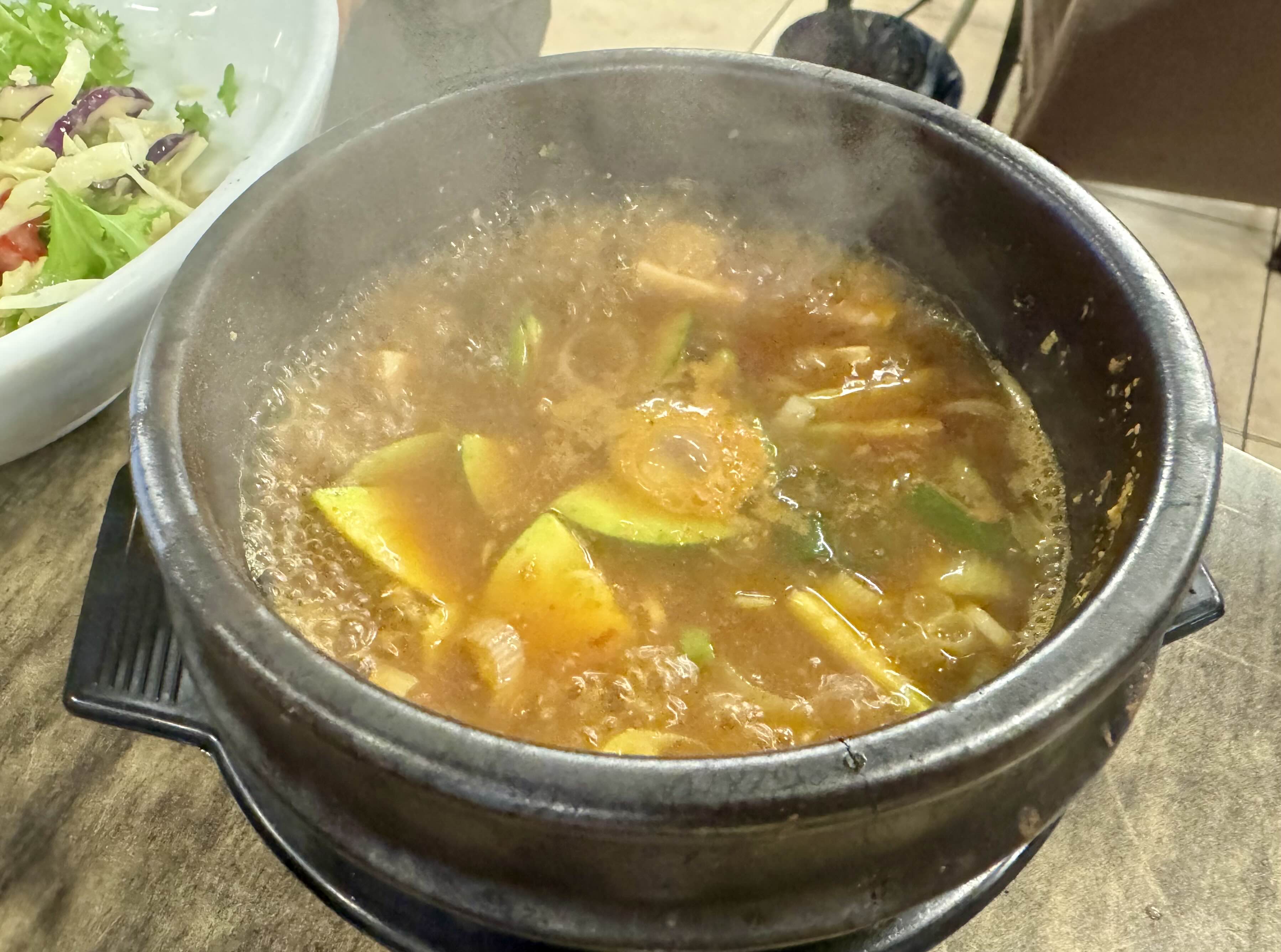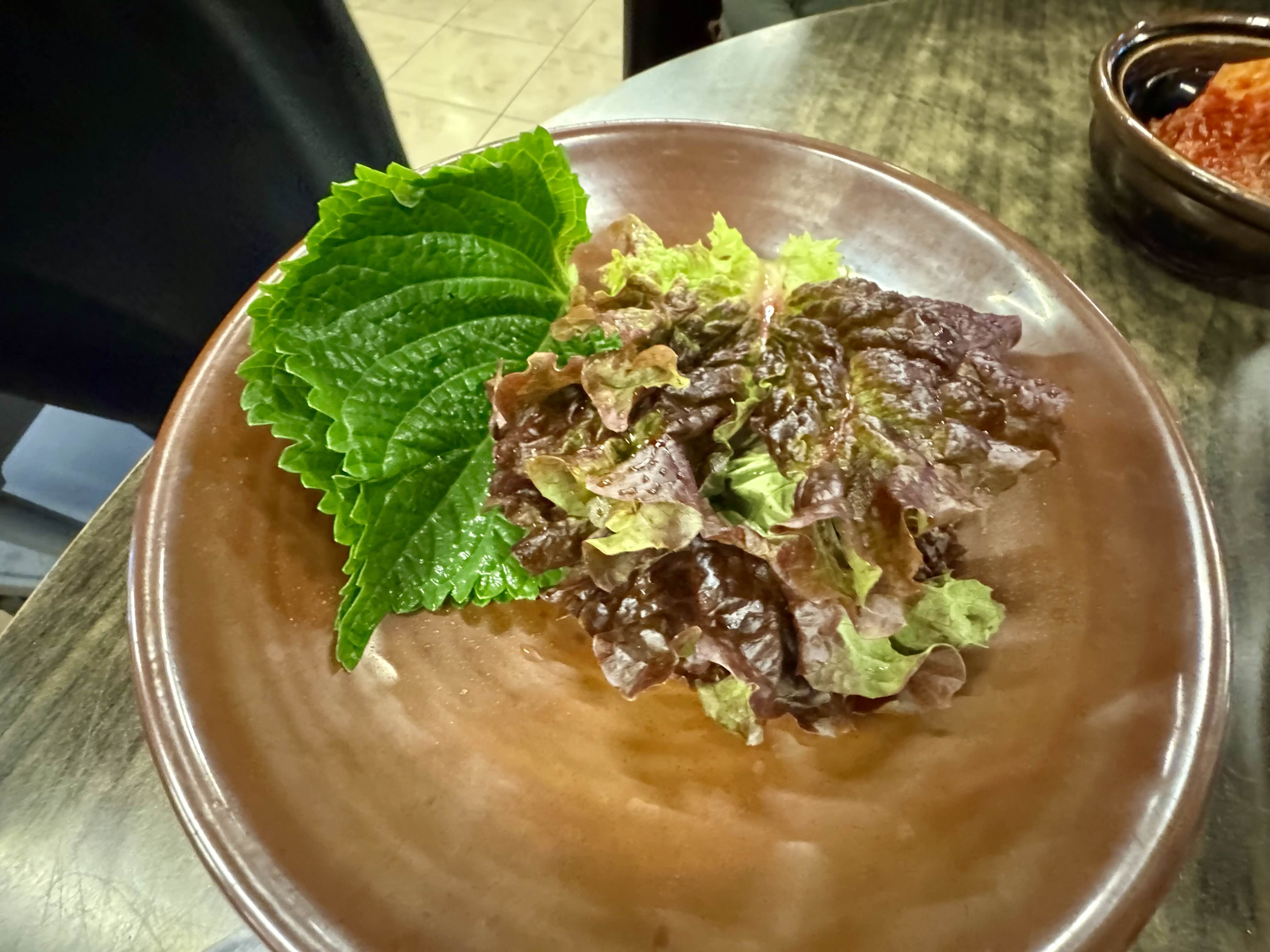 상에 차려지는 기본 반찬은 양념장, 샐러드, 각종 야채까지 정갈하고 다양하다. 기본에 충실하면서도 하나하나 허투루 느껴지지 않는다.