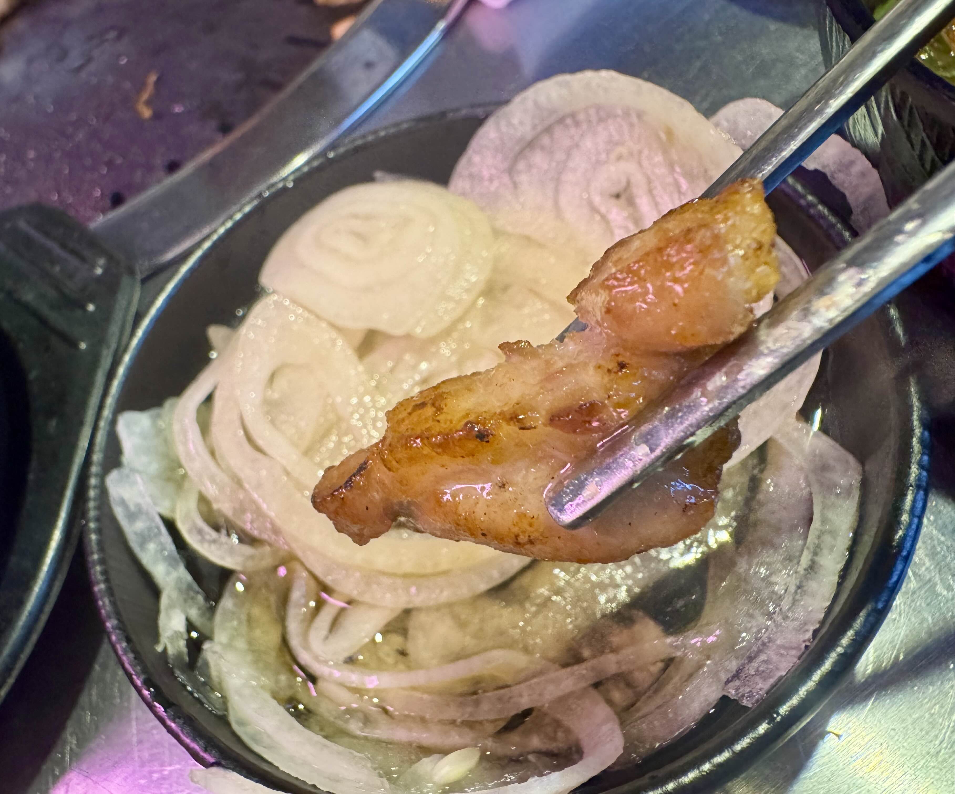 이날은 삼겹살 3인분과 목살 1인분, 총 4인분을 주문했다. 고기는 이미 80% 이상 구워진 상태로 제공되어 불 조절이나 굽는 데에 신경 쓸 필요가 거의 없었다.
